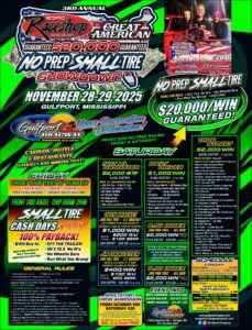 Share Facebook Twitter LinkedIn Pinterest Email Save the Date : Friday- Nov and Saturday Nov Small Tire $20,000.00 GUARANTEED – NO Min Car Count