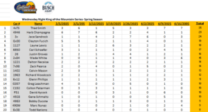 Share Facebook Twitter LinkedIn Pinterest Email Wednesday Night Busch Light King of the Mountain Updated Points Standings. King of the Mountain Bikes Bracket Bikes Outlaw