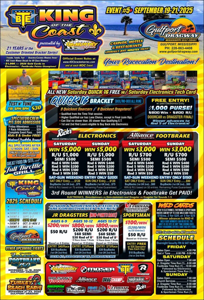 7th Annual Gulfport Dragway’s Turkey Beach Bash Nov 21-23!!!!!! Race for $10,000 for little as $45 Per Entry $10,000 to…