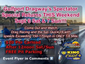 Share Facebook Twitter LinkedIn Pinterest Email A Friendly Reminder!!!!!! $20 Per Carload!!!!FREE Pit Side Parking.Watch Drag Racing from your Tailgate.Full Throttle Grill Concession Stand OPEN.ONLY $20 per Carload after 12noon.A Fun Family Oriented Event.