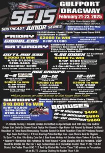 The Southeast Jr Series Debuts at Gulfport Dragway THIS Weekend Feb. 21-23!!!!